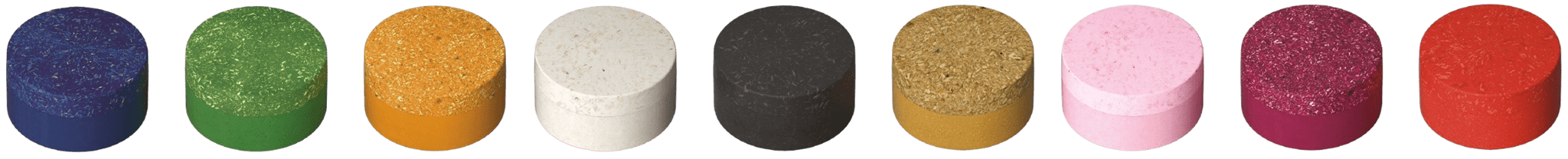 Biobased potjes, gemaakt van Sulapac Premium-materiaal.